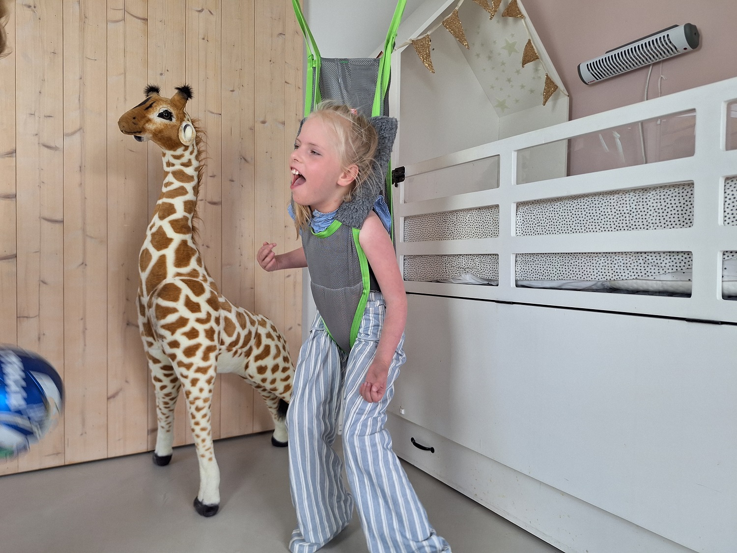 In Hillegom woont de vrolijke tweeling Yvi en Lou (11 jaar) samen met hun ouders, oudere zus en jongere zusje. Beneden delen de meiden twee aangrenzende slaapkamers en daarachter de badkamer. Deze indeling is niet alleen praktisch, maar ook slim aangepast aan hun dagelijkse zorgbehoeften.
